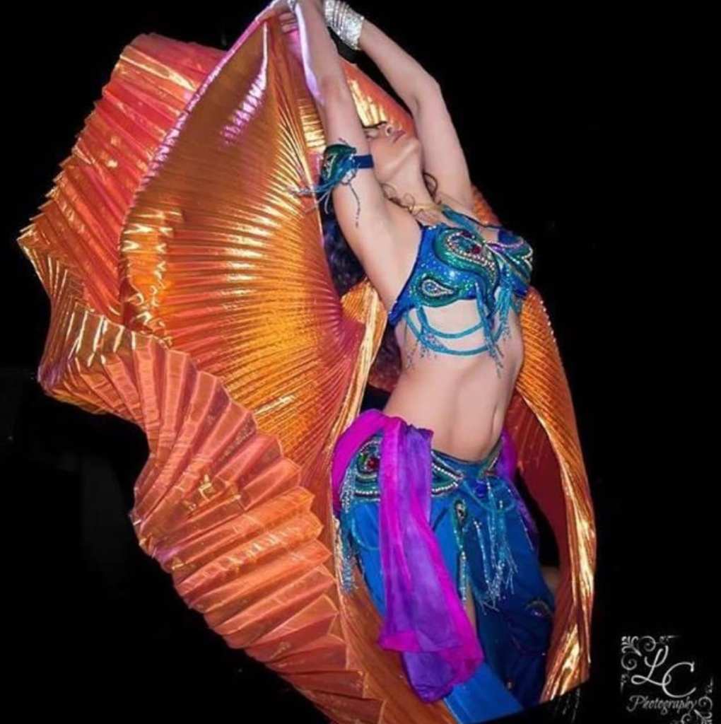 - We will dance with two props every 12 week session. Props in rotation include veil, fan veils, wings, folkloric stick/cane, tray for candles and sword. Additionally, Bellydance choreography fused with hip-hop elements, Flamenco Arabe, Jazz , Modern, Samba or Salsa/Cha Cha influences.